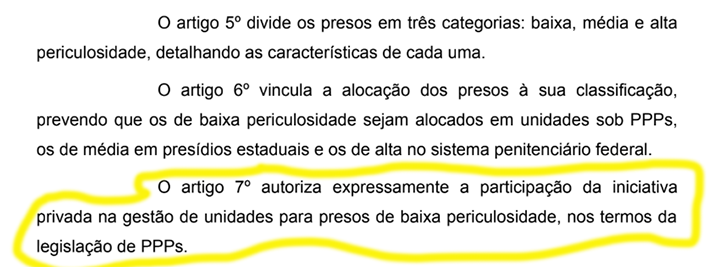 Cria-se, assim, um caminho institucionalizado para a terceirização permanente da ambiência prisional, algo já condenado em diversos relatórios nacionais e internacionais, e que contraria diretamente o diagnóstico da ADPF 347, que atribui o Estado de Coisas Inconstitucional à ausência de servidores públicos e à terceirização abusiva.