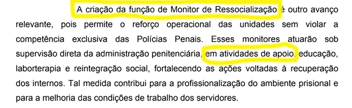 Essa criação, embora acompanhada de uma extensa lista de vedações, normatiza e dá respaldo jurídico à presença de profissionais não concursados desempenhando tarefas dentro da ambiência prisional, inclusive entrando em celas, pavilhões, pátios, enfermarias e salas de aula. Apesar de o texto insistir que esses monitores não exercerão poder de polícia, o conjunto de funções permitidas acaba por aproximá-los perigosamente do cotidiano operacional do Policial Penal — ampliando a zona cinzenta entre atividades “auxiliares” e atividades de custódia.