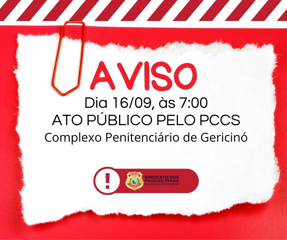 (21) 2532-0207 contato@sindsistema.org.br Av. Treze de Maio, n°. 13 – sala 709 – Cinelândia, Rio de Janeiro Lugar de demonstrar sua insatisfação com o descaso do governo com a categoria de Policiais Penais é em frente ao Complexo Penitenciário de Gericinó, dia 16/09 à partir das 7:00 da manhã. ATO PÚBLICO PELO PCCS. Te vejo […]