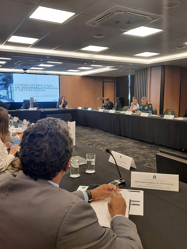 Anunciação chamou a atenção sobre o PL 2694/2015 que tramita no Senado e prevê a legitimação dessa usurpação das atividades da Polícia Penal. O presidente da Fenasppen pediu que o Conselho se manifeste a esse respeito. “É inadmissível terceirizar uma atribuição típica de Estado como é a Polícia Penal. Não dá para combater o crime organizado, desmantelar organizações criminosas sem fortalecer a presença do Estado no Sistema Penitenciário e entregar a atividade policial penal para a exploração financeira em contratos milionários dessas empresas. Isso é criminoso!”, denunciou Anunciação. O Secretário Nacional de Segurança Pública, Mário Sarrubo propôs que o tema seja debatido na próxima reunião do Conselho.